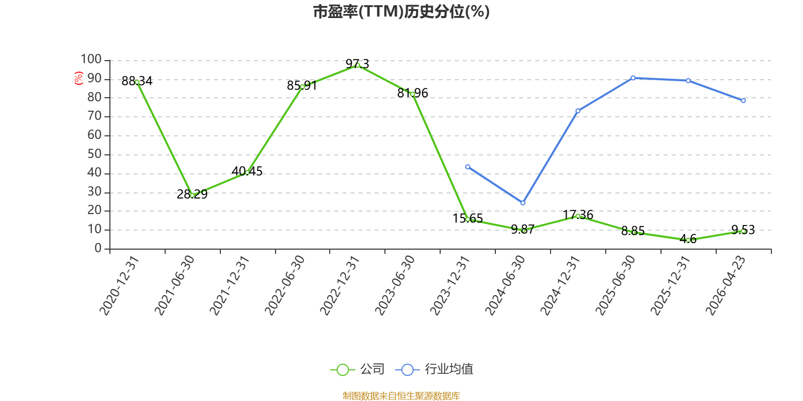 市盈率、市净率为负时,不显示当期分位数,会导致折线图中断。