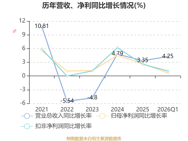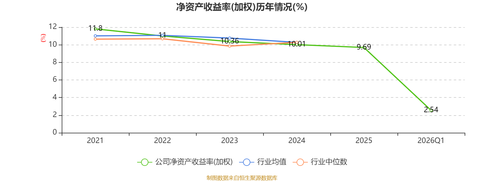 盈利能力方面, 2026年一季度公司加权平均净资产收益率为2.54%,同比下降0.12个百分点。