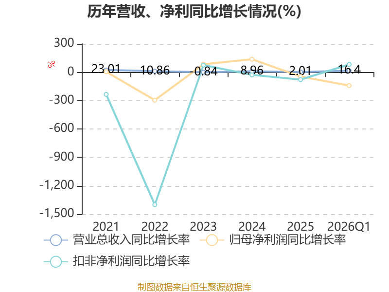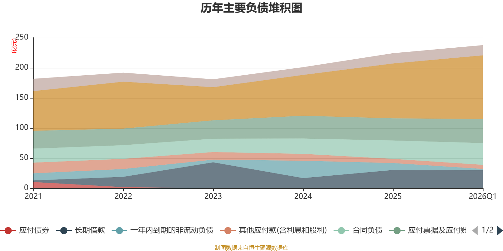 负债重大变化方面,截至2026年一季度末,公司短期借款较上年末增加16.05%,占公司总资产比重上升3.51个百分点;一年内到期的非流动负债较上年末减少79.48%,占公司总资产比重下降3.33个百分点;合同负债较上年末增加18.55%,占公司总资产比重上升1.44个百分点;长期借款较上年末减少1.53%,占公司总资产比重下降0.64个百分点。