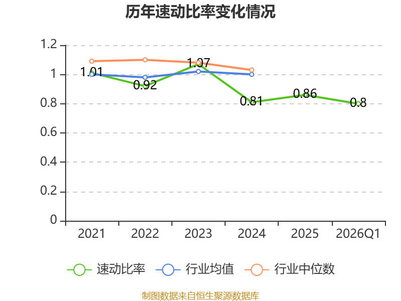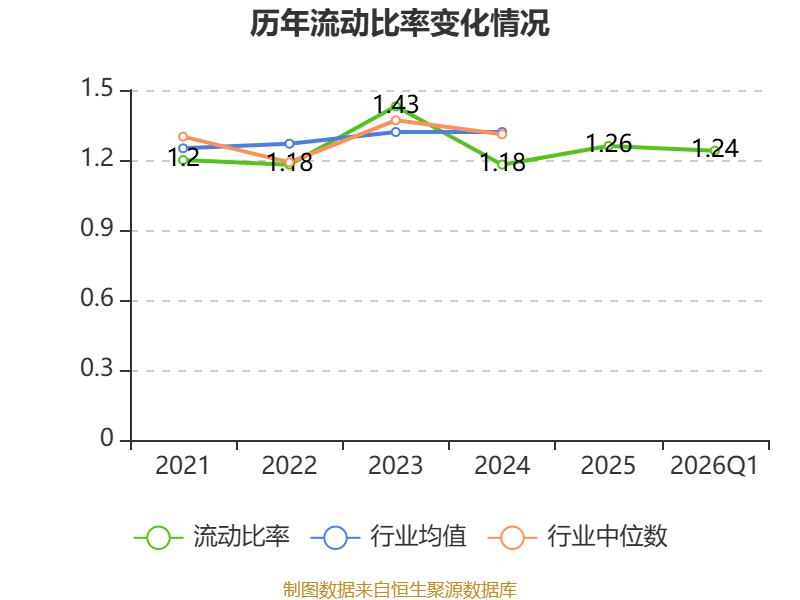 2026年第一季度,公司流动比率为1.24,速动比率为0.8。