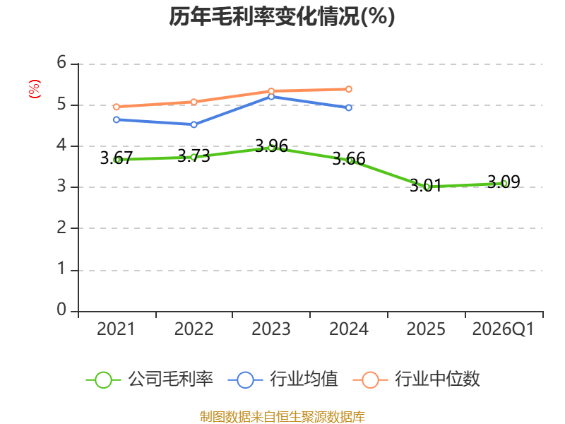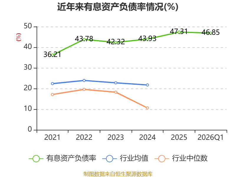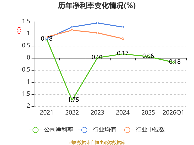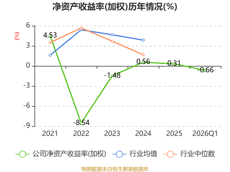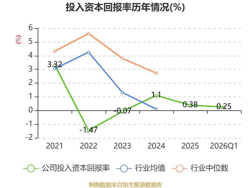 盈利能力方面, 2026年一季度公司加权平均净资产收益率为-0.66%,同比下降0.39个百分点。公司2026年第一季度投入资本回报率为0.25%,较上年同期上升0.24个百分点。