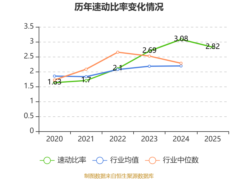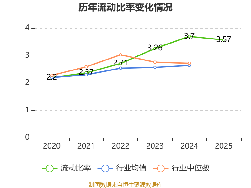 2025年,公司流动比率为3.57,速动比率为2.82。