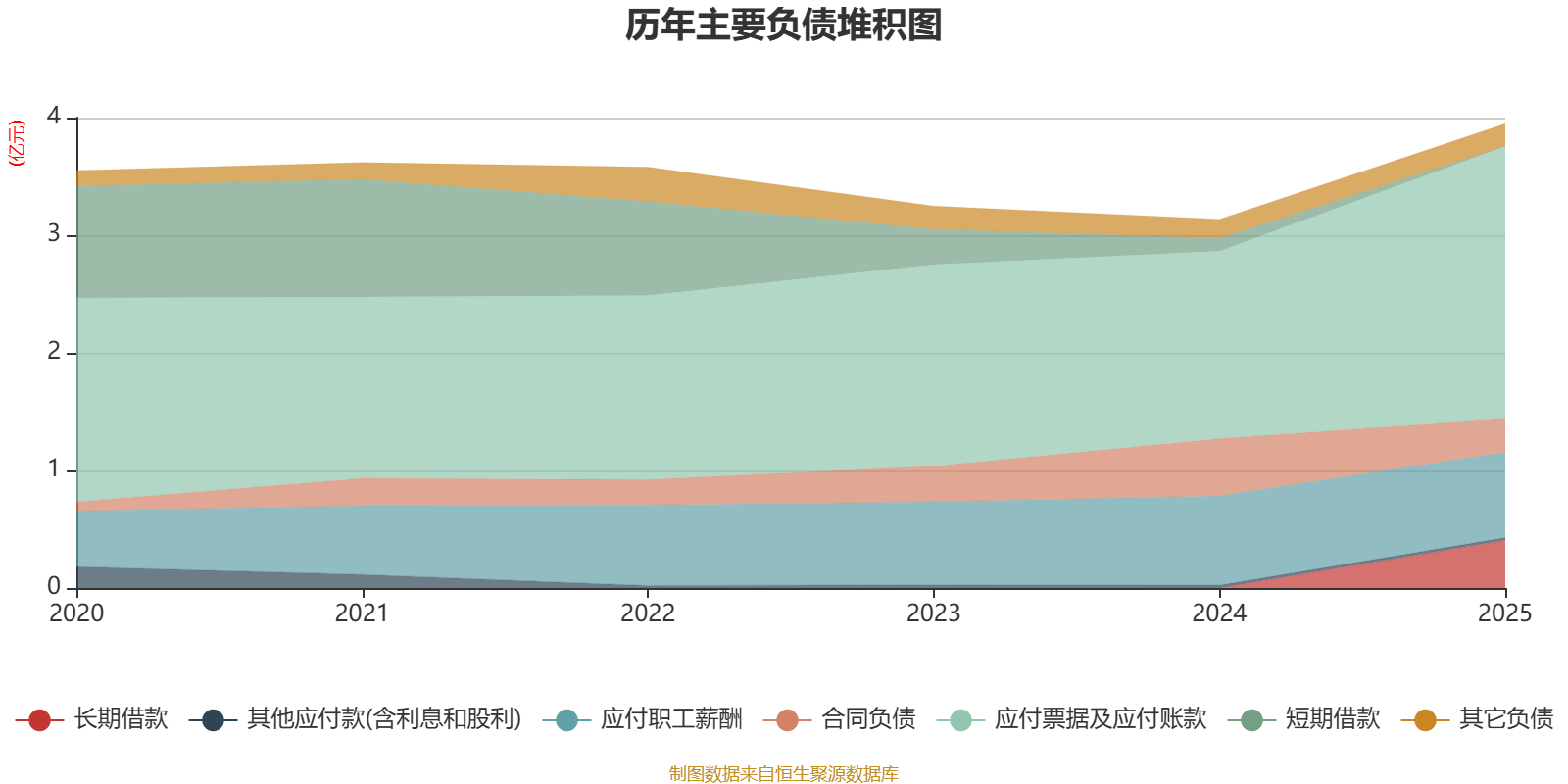 负债重大变化方面,截至2025年末,公司应付票据及应付账款较上年末增加45.35%,占公司总资产比重上升3.45个百分点;长期借款占公司总资产的2.47%,上年末为0;合同负债较上年末减少41.64%,占公司总资产比重下降1.52个百分点;短期借款较上年末减少100%,占公司总资产比重下降0.73个百分点。