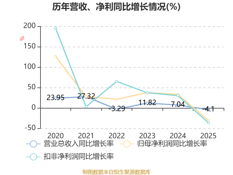 中证智能财讯同为股份(002835)4月24日披露2025年年度报告。2025年,公司实现营业总收入11.14亿元,同比下降4.10%;归母净利润1.39亿元,同比下降30.49%;扣非净利润1.22亿元,同比下降36.05%;经营活动产生的现金流量净额为1.14亿元,同比下降55.60%;报告期内,同为股份基本每股收益为0.64元,加权平均净资产收益率为11.39%。公司2025年度分配预案为:拟向全体股东每10股派现2.8元(含税)。