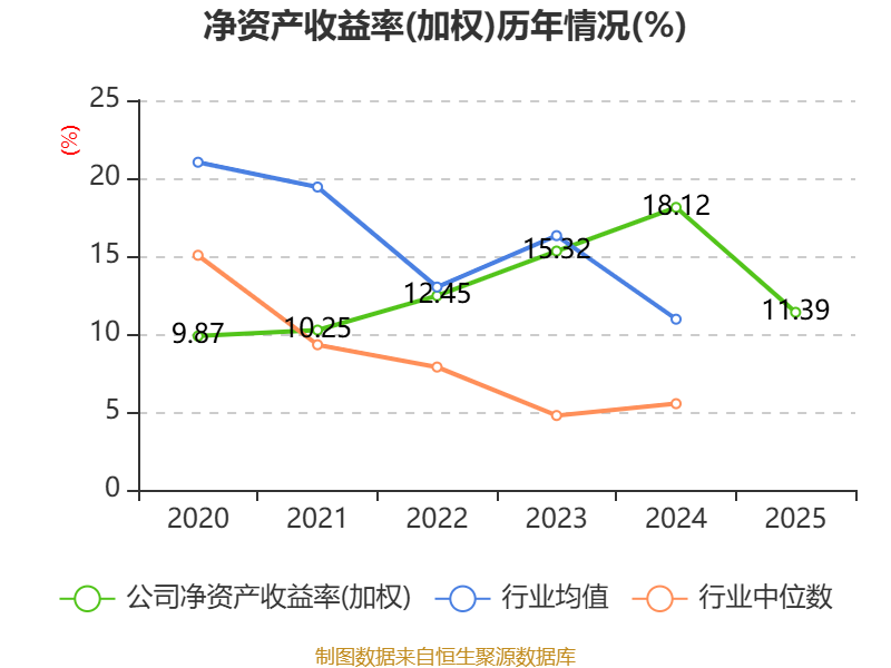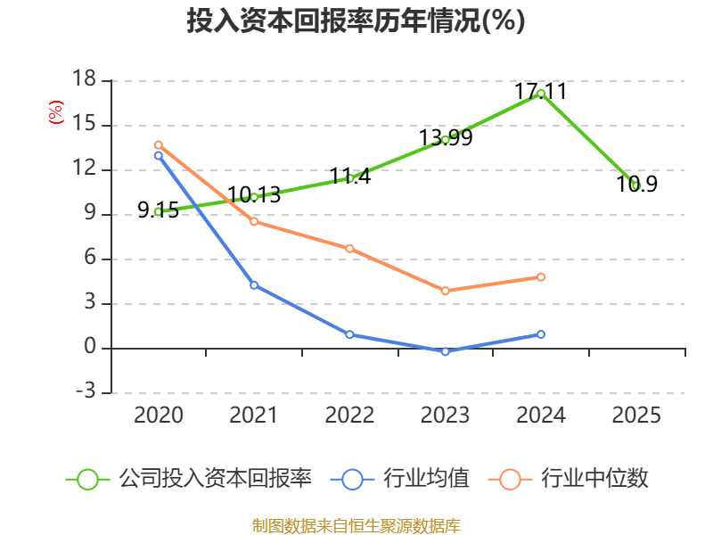 数据显示,2025年公司加权平均净资产收益率为11.39%,较上年同期下降6.73个百分点。公司2025年投入资本回报率为10.9%,较上年同期下降6.21个百分点。