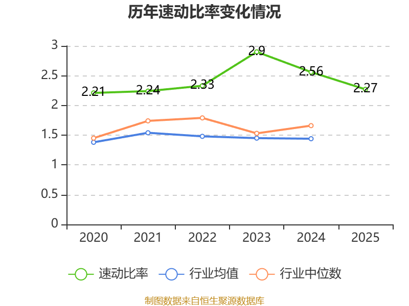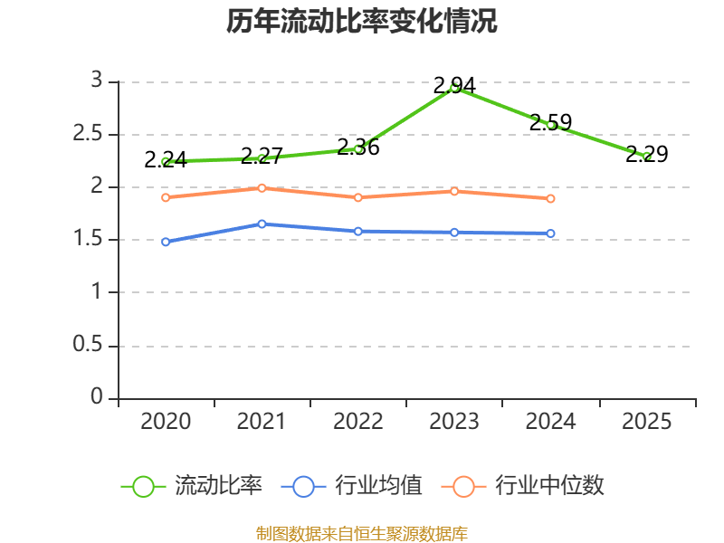 2025年,公司流动比率为2.29,速动比率为2.27。