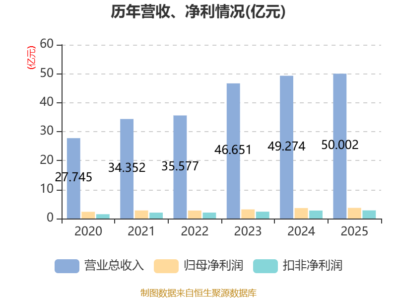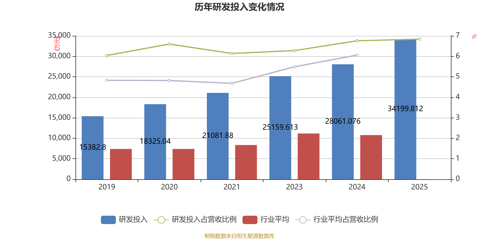 2025年全年,公司研发投入金额为3.42亿元,同比增长21.88%;研发投入占营业收入比例为6.84%,相比上年同期上升0.08个百分点。