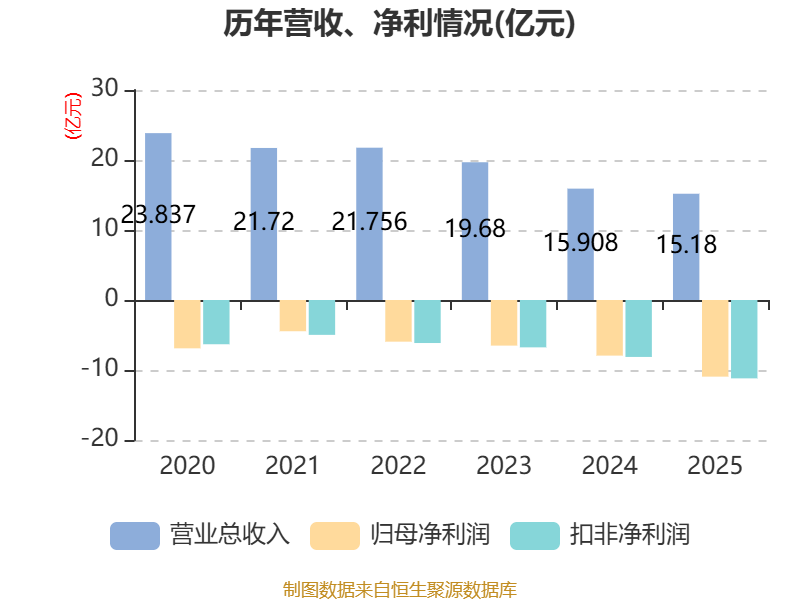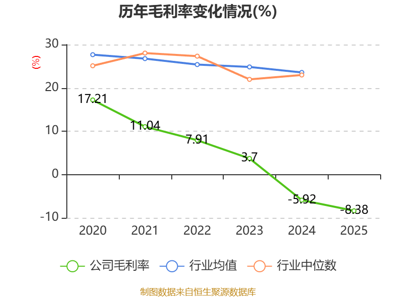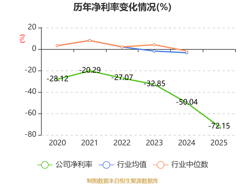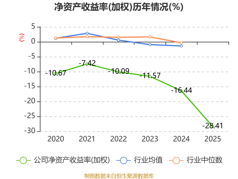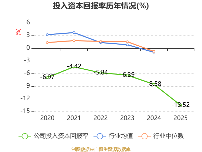 数据显示,2025年公司加权平均净资产收益率为-28.41%,较上年同期下降11.97个百分点。公司2025年投入资本回报率为-13.52%,较上年同期下降4.94个百分点。