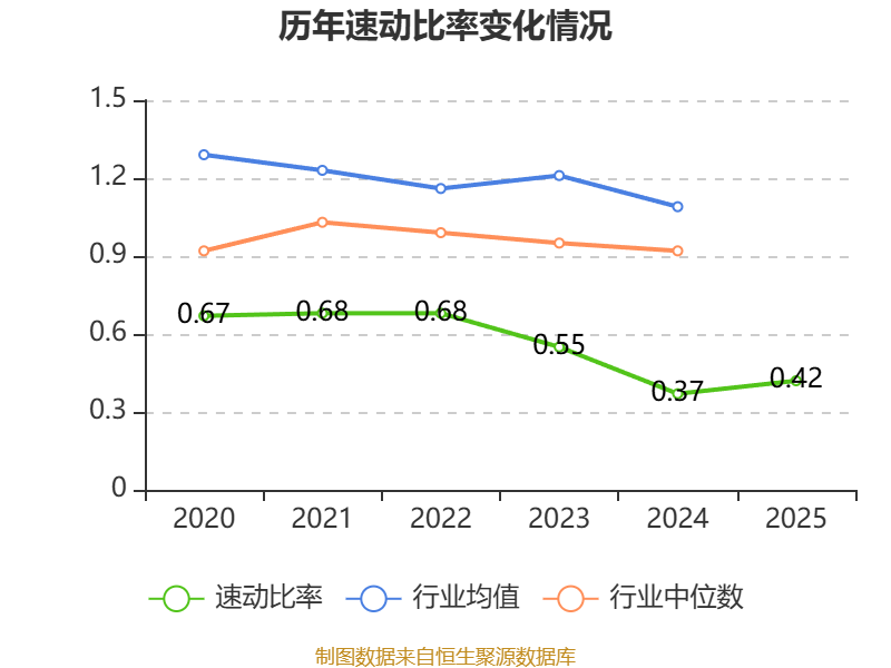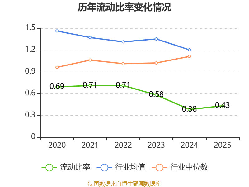 2025年,公司流动比率为0.43,速动比率为0.42。