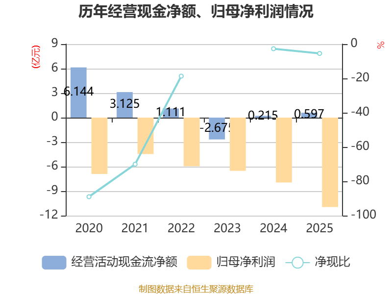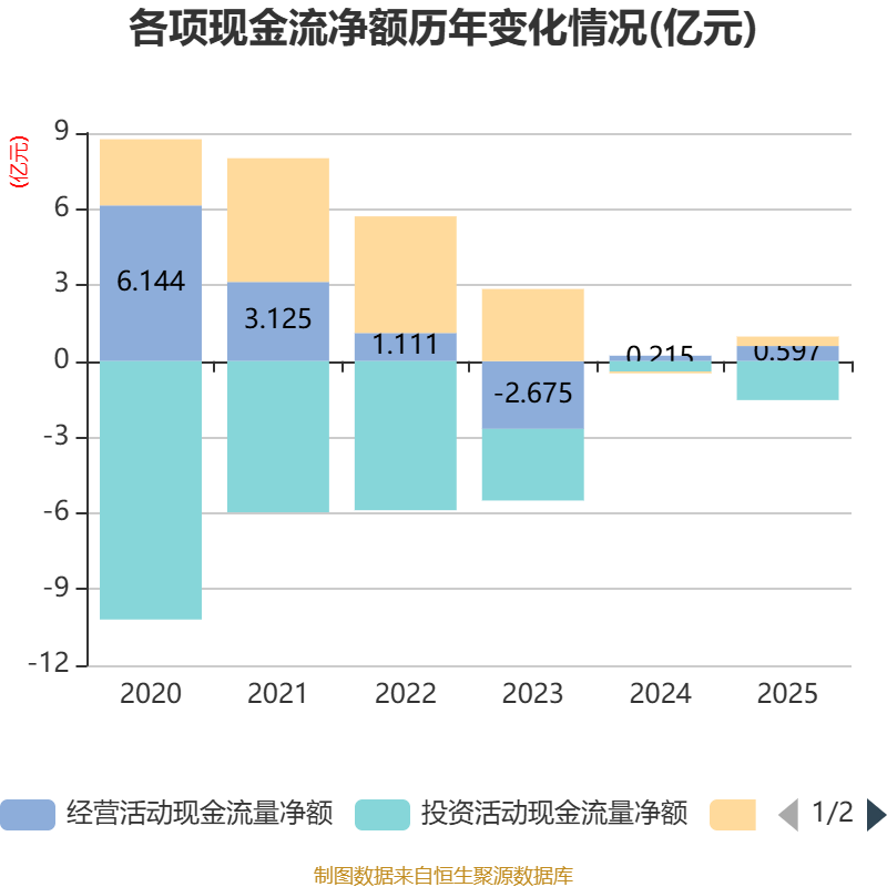截至2025年,公司经营活动现金流净额为5968.15万元,同比增长177.91%;筹资活动现金流净额3721.9万元,同比增加4461.49万元;投资活动现金流净额-1.54亿元,上年同期为-4064.53万元。