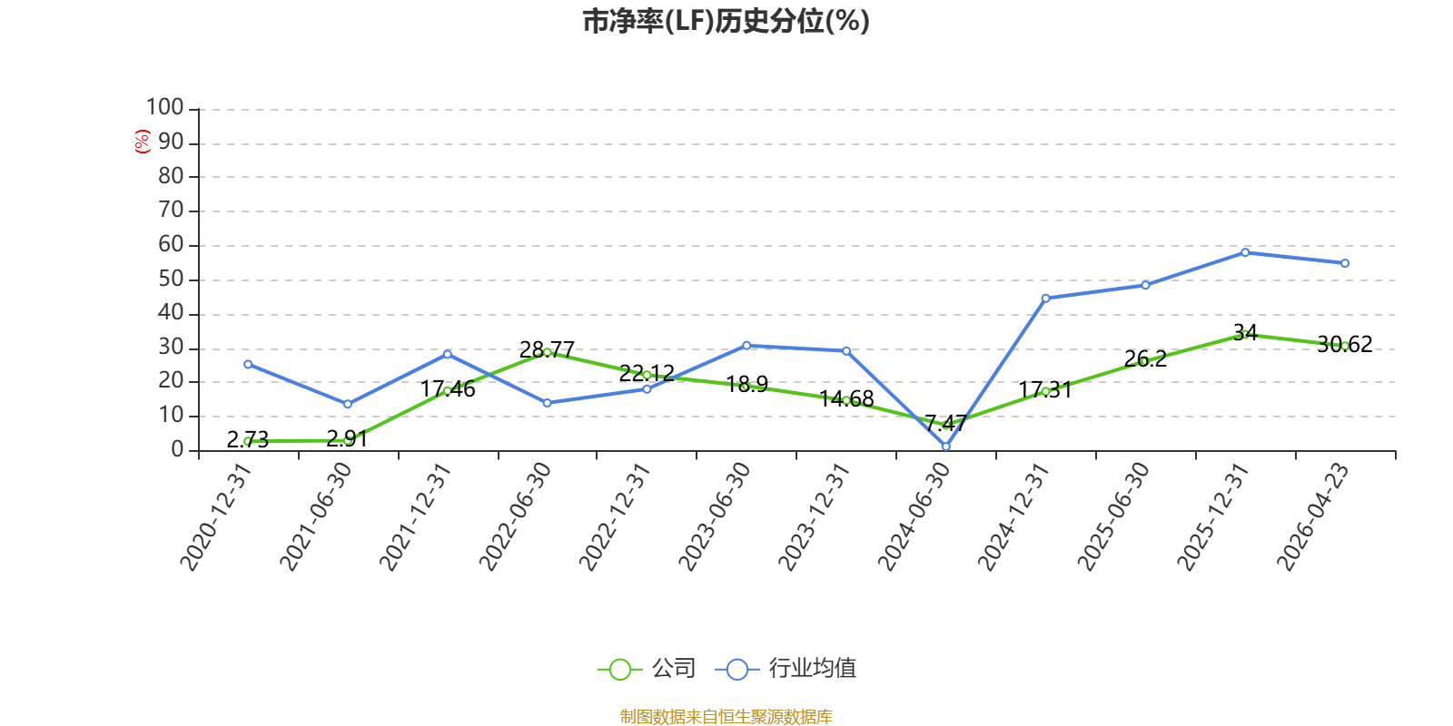 市盈率、市净率为负时,不显示当期分位数,会导致折线图中断。