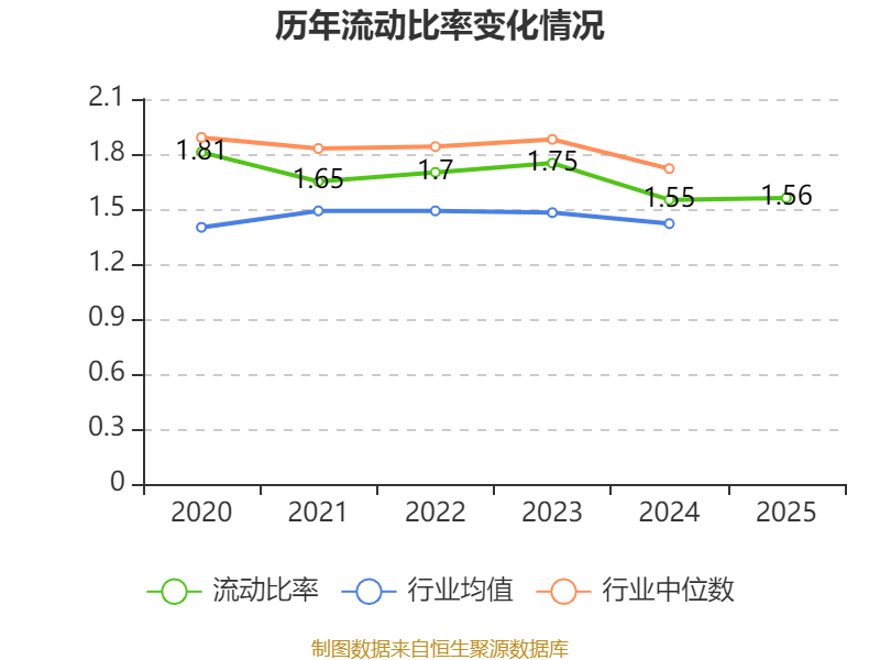 2025年,公司流动比率为1.56,速动比率为1.17。