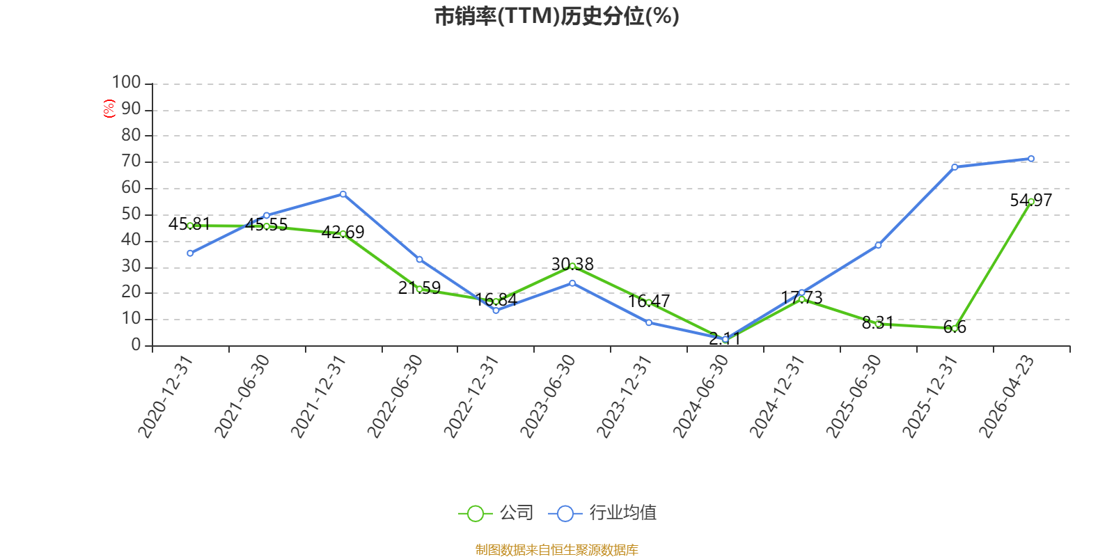 以4月23日收盘价计算,创力集团目前市盈率(TTM)约为54.93倍,市净率(LF)约1.52倍,市销率(TTM)约2.22倍。