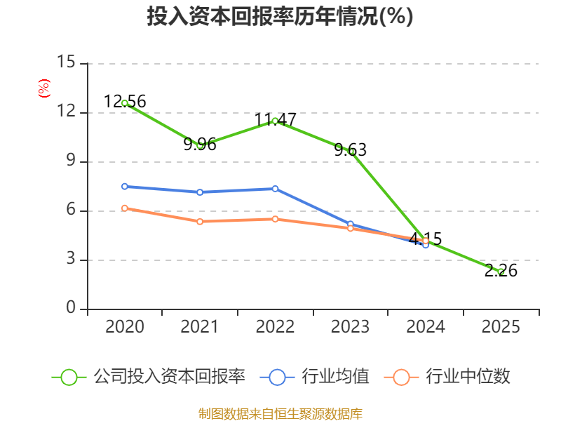 数据显示,2025年公司加权平均净资产收益率为2.81%,较上年同期下降3.03个百分点。公司2025年投入资本回报率为2.26%,较上年同期下降1.89个百分点。