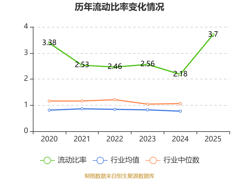 2025年,公司流动比率为3.7,速动比率为3.14。