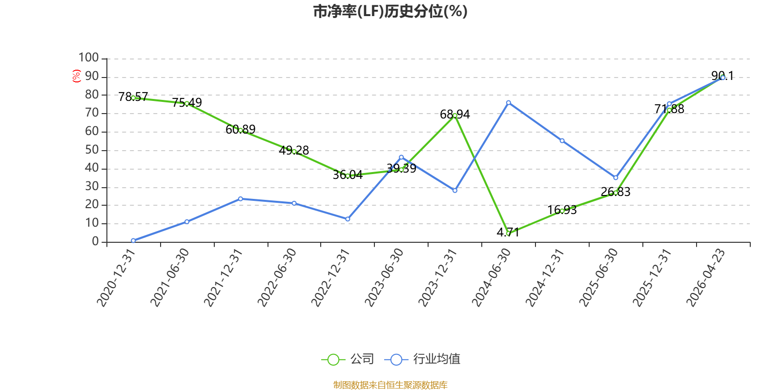 市盈率、市净率为负时,不显示当期分位数,会导致折线图中断。