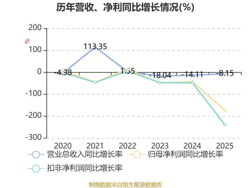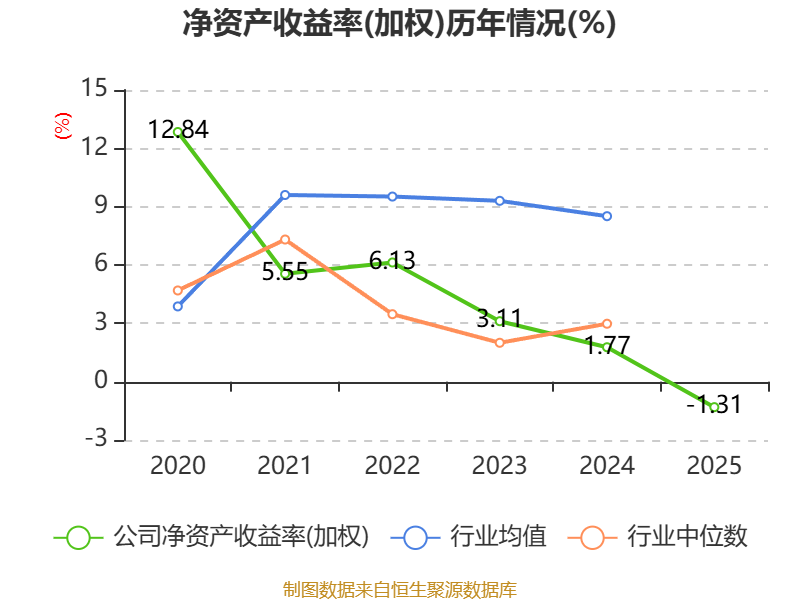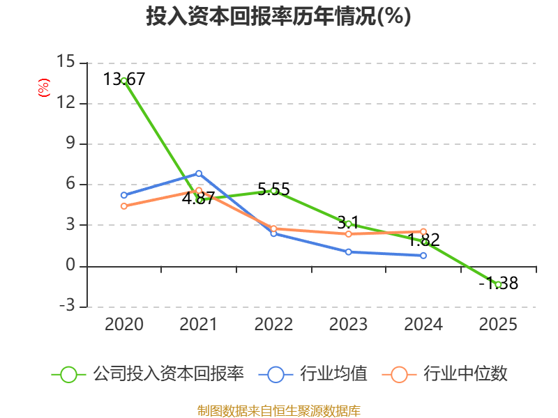 数据显示,2025年公司加权平均净资产收益率为-1.31%,较上年同期下降3.08个百分点。公司2025年投入资本回报率为-1.38%,较上年同期下降3.2个百分点。