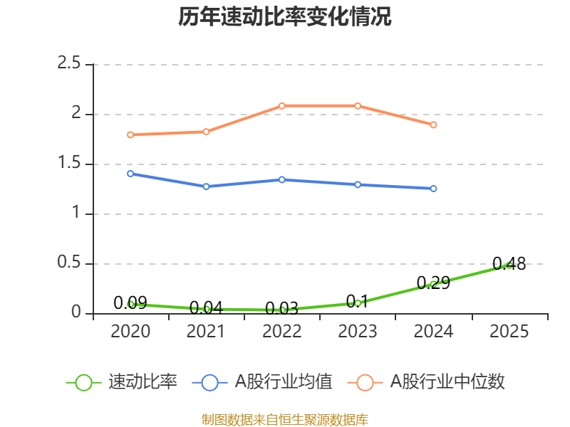 2025年,公司流动比率为0.49,速动比率为0.48。
