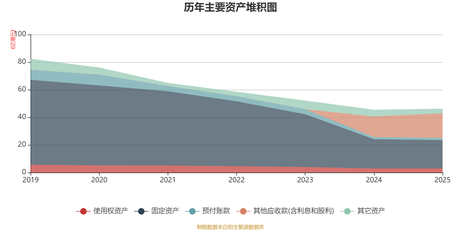 资产重大变化方面,截至2025年末,公司其他应收款(含利息和股利)较上期末增加19.91%,占公司总资产比重上升5.87个百分点;存货较上期末减少78.17%,占公司总资产比重下降3.55个百分点;固定资产较上期末减少2.84%,占公司总资产比重下降2.08个百分点;预付账款较上期末减少3.26%,占公司总资产比重下降0.17个百分点。