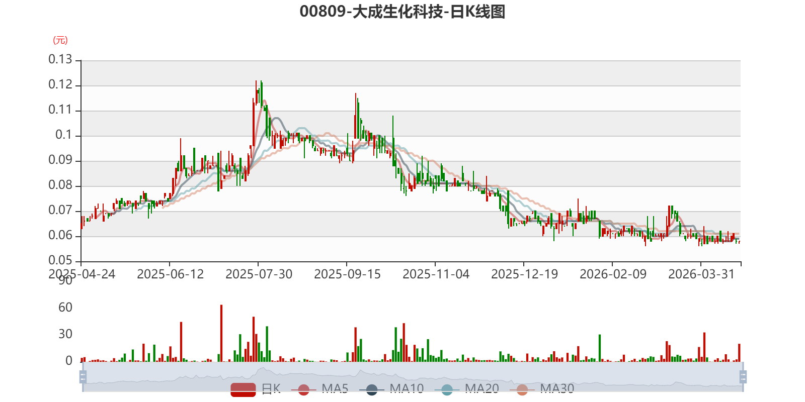 中证智能财讯大成生化科技(00809)4月24日披露2025年度报告。报告期内,公司实现营业收入22.79亿港元,同比增长13.86%;归母净利润1.56亿港元,同比下降79.69%;据报告显示,大成生化科技基本每股收益为0.014港元。