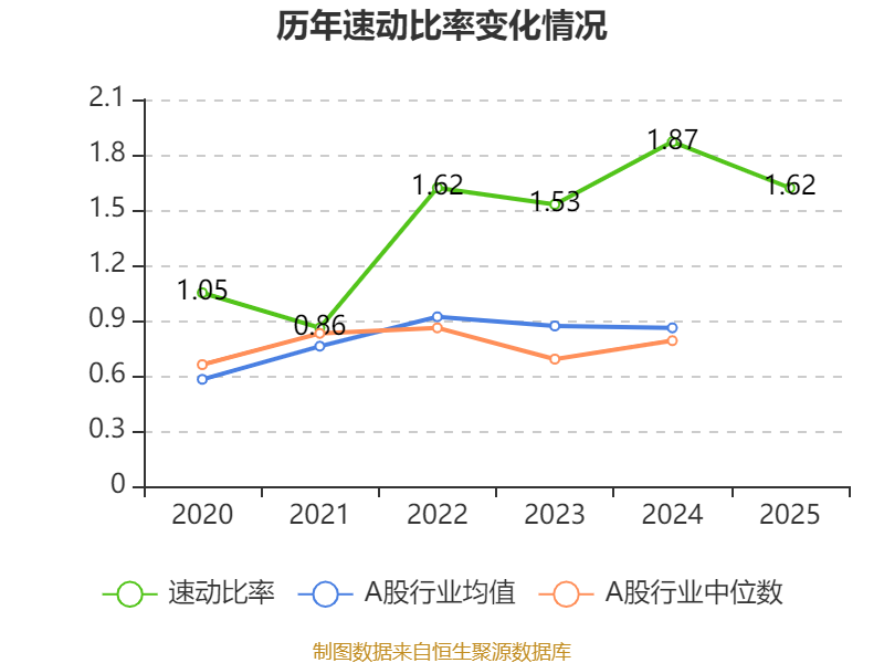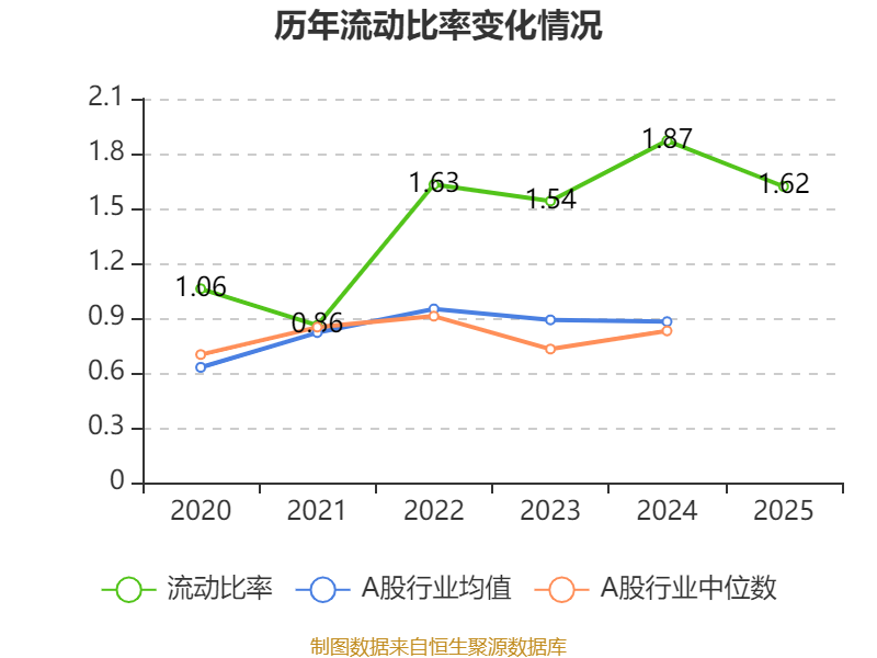 2025年,公司流动比率为1.62,速动比率为1.62。