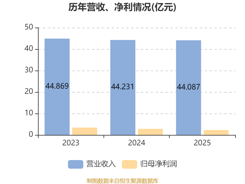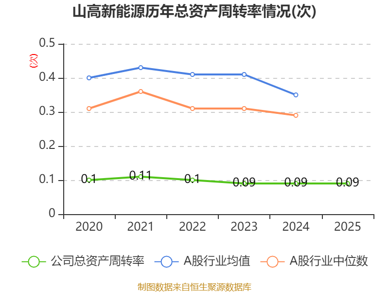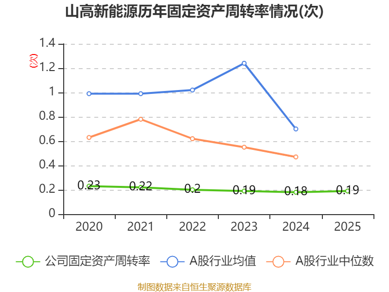中证智能财讯山高新能源(01250)4月23日披露2025年度报告。报告期内,公司实现营业收入44.09亿元,同比下降0.33%;归母净利润2.29亿元,同比下降19.51%;据报告显示,山高新能源基本每股收益为0.1018元,平均净资产收益率为1.74%。