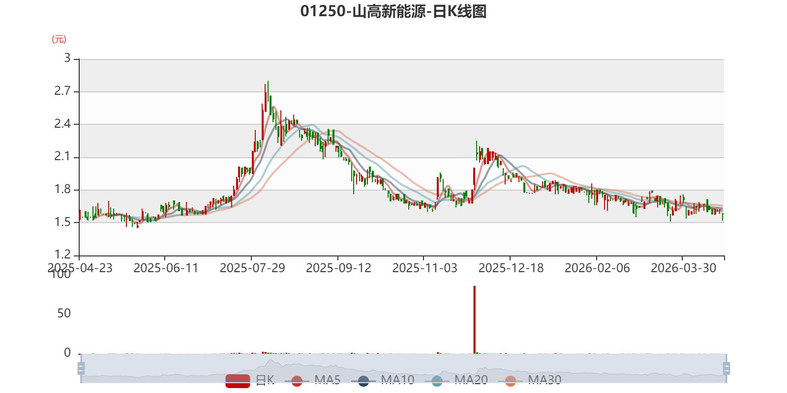 以4月23日收盘价计算,山高新能源目前市盈率(TTM)约14.01倍,市净率(TTM)约0.24倍,市销率(TTM)约0.73倍。