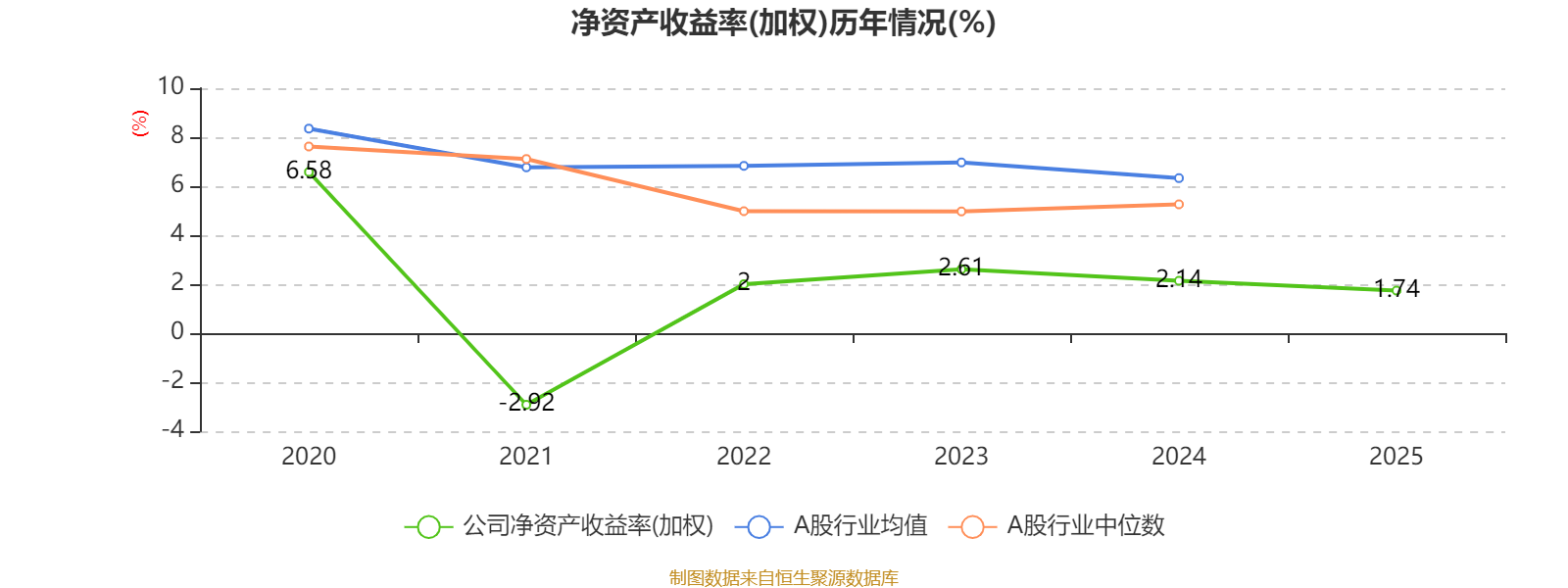 数据显示,2025年公司平均净资产收益率为1.74%,较上年同期下降0.4个百分点。