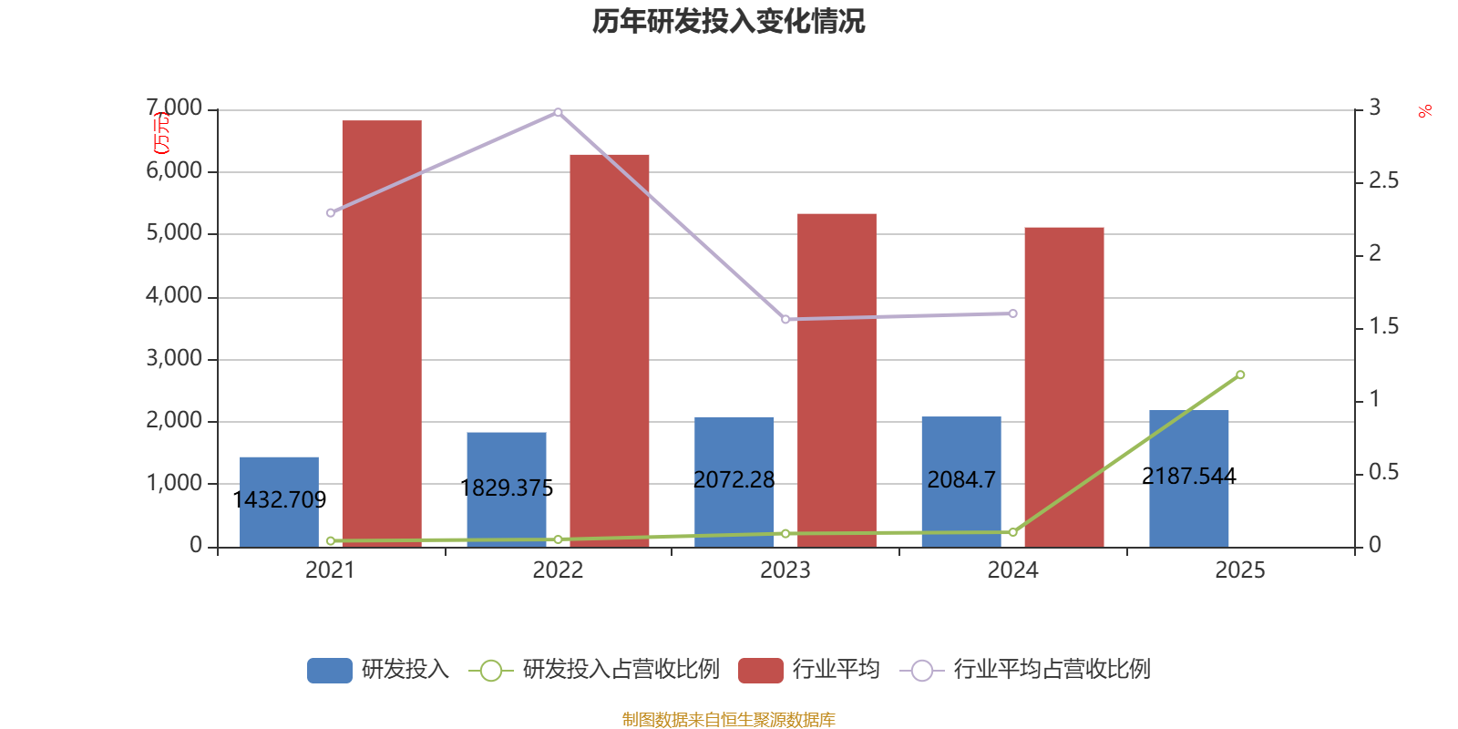 2025年全年,公司研发投入金额为2187.54万元,同比增长4.93%;研发投入占营业收入比例为1.18%,相比上年同期上升1.08个百分点。