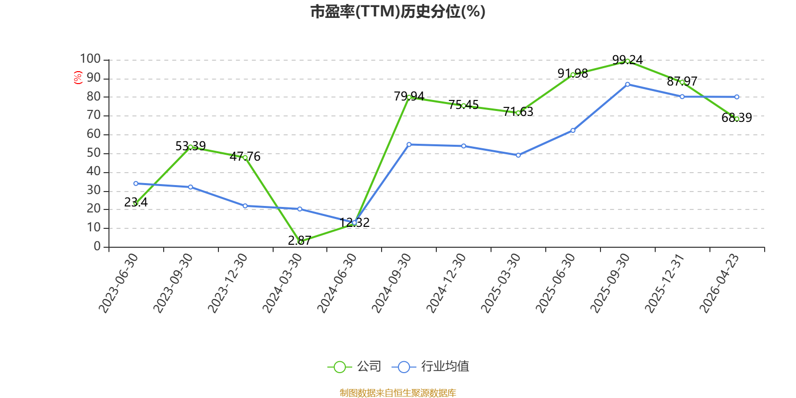 市盈率、市净率为负时,不显示当期分位数,会导致折线图中断。