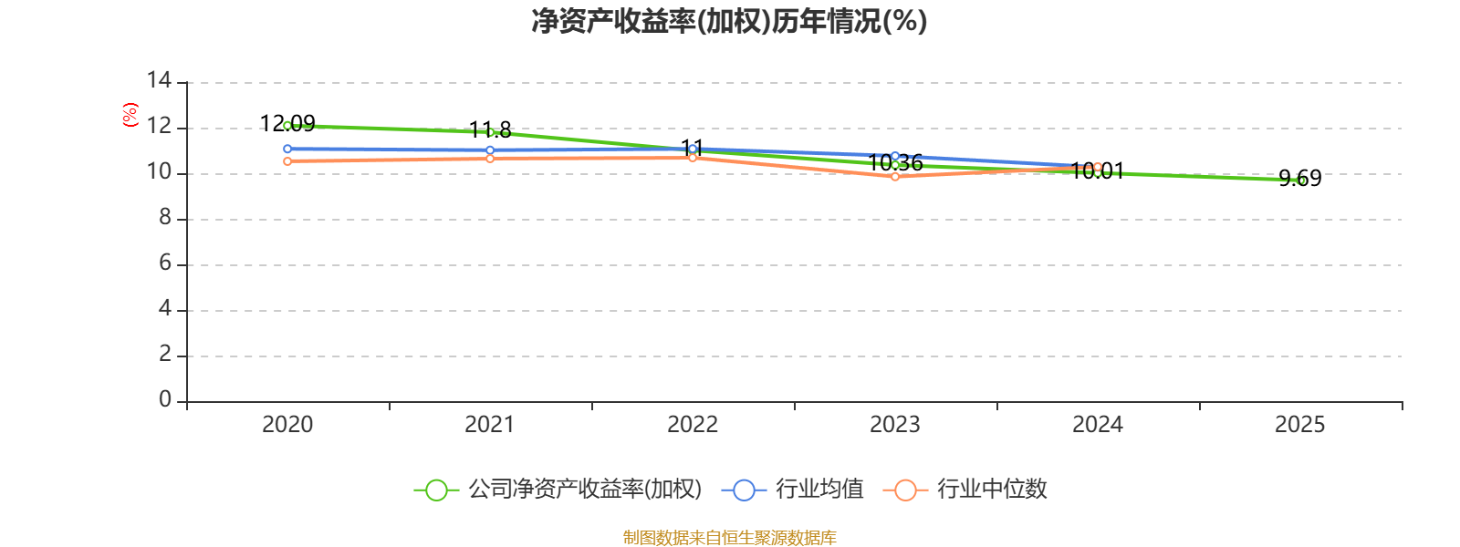 数据显示,2025年公司加权平均净资产收益率为9.69%,较上年同期下降0.32个百分点。
