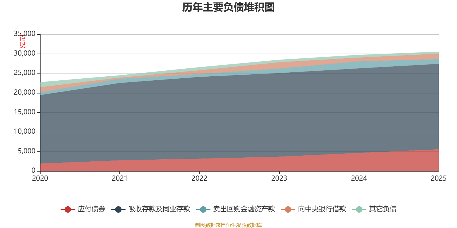 负债重大变化方面,截至2025年末,公司应付债券较上年末增加19.6%,占公司总资产比重上升2.39个百分点;卖出回购金融资产款较上年末减少31.94%,占公司总资产比重下降1.88个百分点;向中央银行借款较上年末增加46.57%,占公司总资产比重上升1.27个百分点;吸收存款及同业存款较上年末增加1.07%,占公司总资产比重下降0.96个百分点。