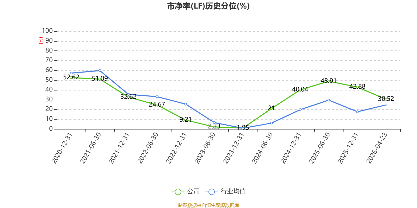 市盈率、市净率为负时,不显示当期分位数,会导致折线图中断。