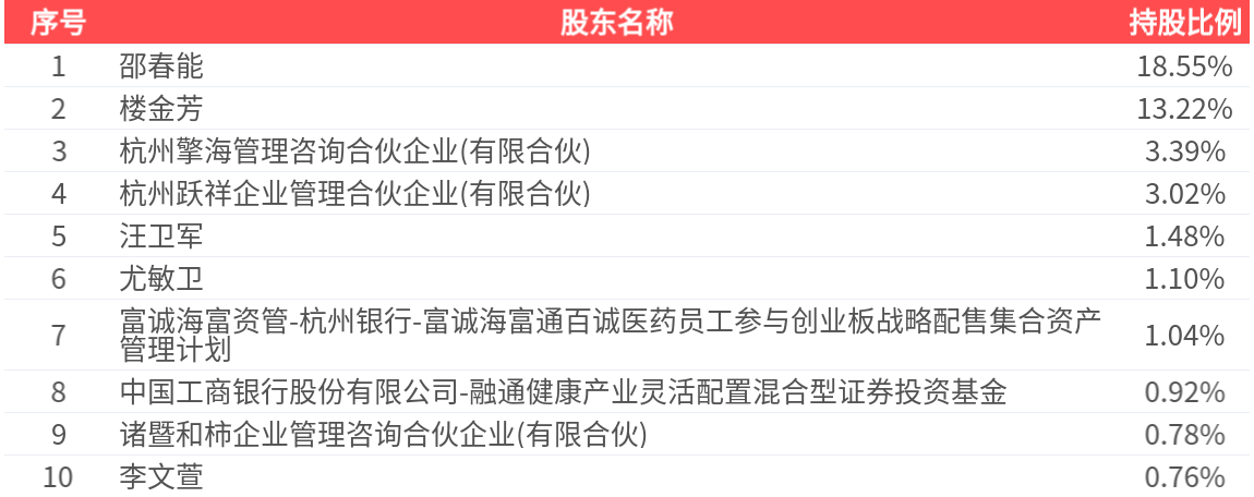 公司股东户数为1.11万户,前十大股东持股数量为4833.84万股,占总股本比例为44.25%,前十大股东持股情况如下: