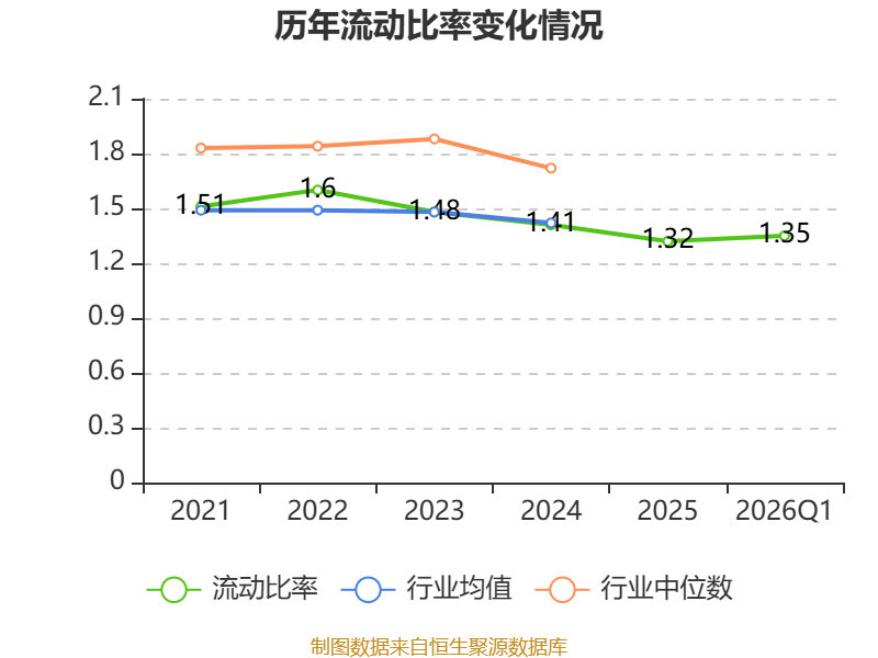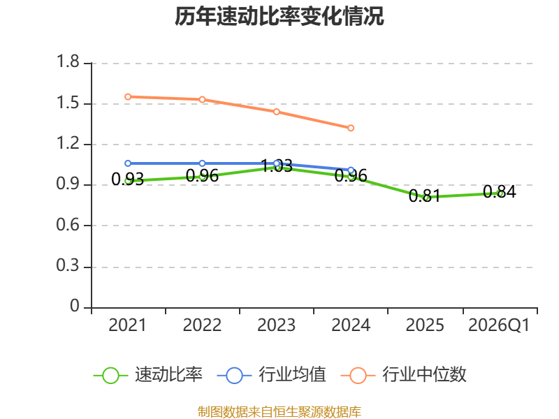2026年第一季度,公司流动比率为1.35,速动比率为0.84。