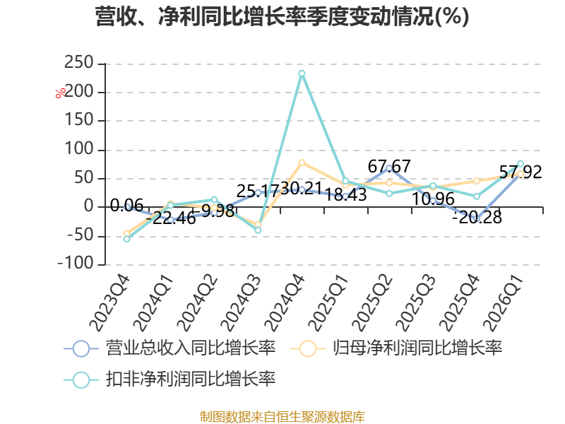 负债重大变化方面,截至2026年一季度末,公司短期借款较上年末增加293.52%,占公司总资产比重上升4.71个百分点;合同负债较上年末减少17.15%,占公司总资产比重下降3.4个百分点;应付职工薪酬较上年末减少44.52%,占公司总资产比重下降0.82个百分点;一年内到期的非流动负债较上年末减少73.15%,占公司总资产比重下降0.82个百分点。