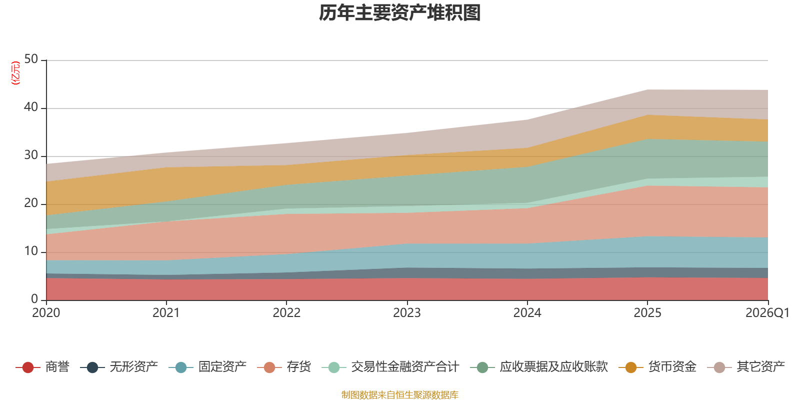 资产重大变化方面,截至2026年一季度末,公司应收票据及应收账款较上年末减少11.27%,占公司总资产比重下降2.09个百分点;交易性金融资产合计较上年末增加50.92%,占公司总资产比重上升1.72个百分点;货币资金较上年末减少8.29%,占公司总资产比重下降0.93个百分点;合同资产较上年末增加39.95%,占公司总资产比重上升0.9个百分点。