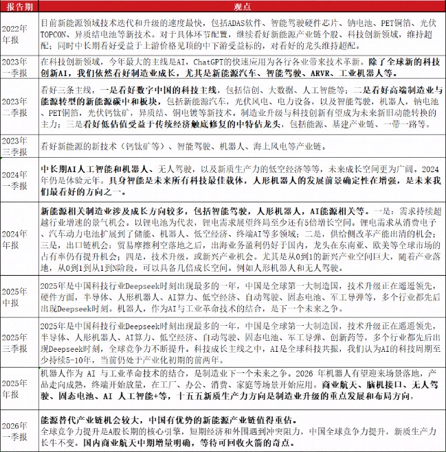 十六年前,闫思倩以电新行业卖方研究员身份入行,十余年间见证了新能源行业的崛起,也积淀了深厚的制造产业投资经验和心得。从新能源到人工智能,再到2026年1季报披露的商业航天持仓,她始终将自身能力圈与时代产业趋势进行耦合,置身于科技产业的最前沿。这一特点在她管理基金的定期报告中清晰可见: