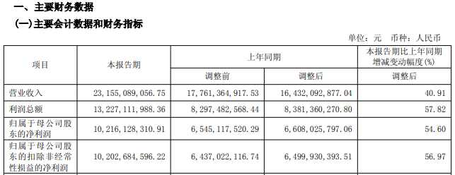 4月24日,中信证券发布《2026年第一季度报告》称,报告期内,公司实现营业收入231.55亿元,同比增加40.91%;实现归属于母公司股东的净利润(下称“净利润”)102.16亿元,同比增加54.60%。