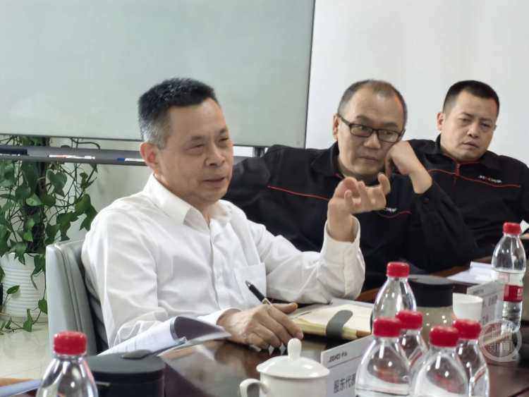 神驰机电董事长兼总经理艾纯(左一)。上游新闻记者刘勇实习生黄璐颖摄