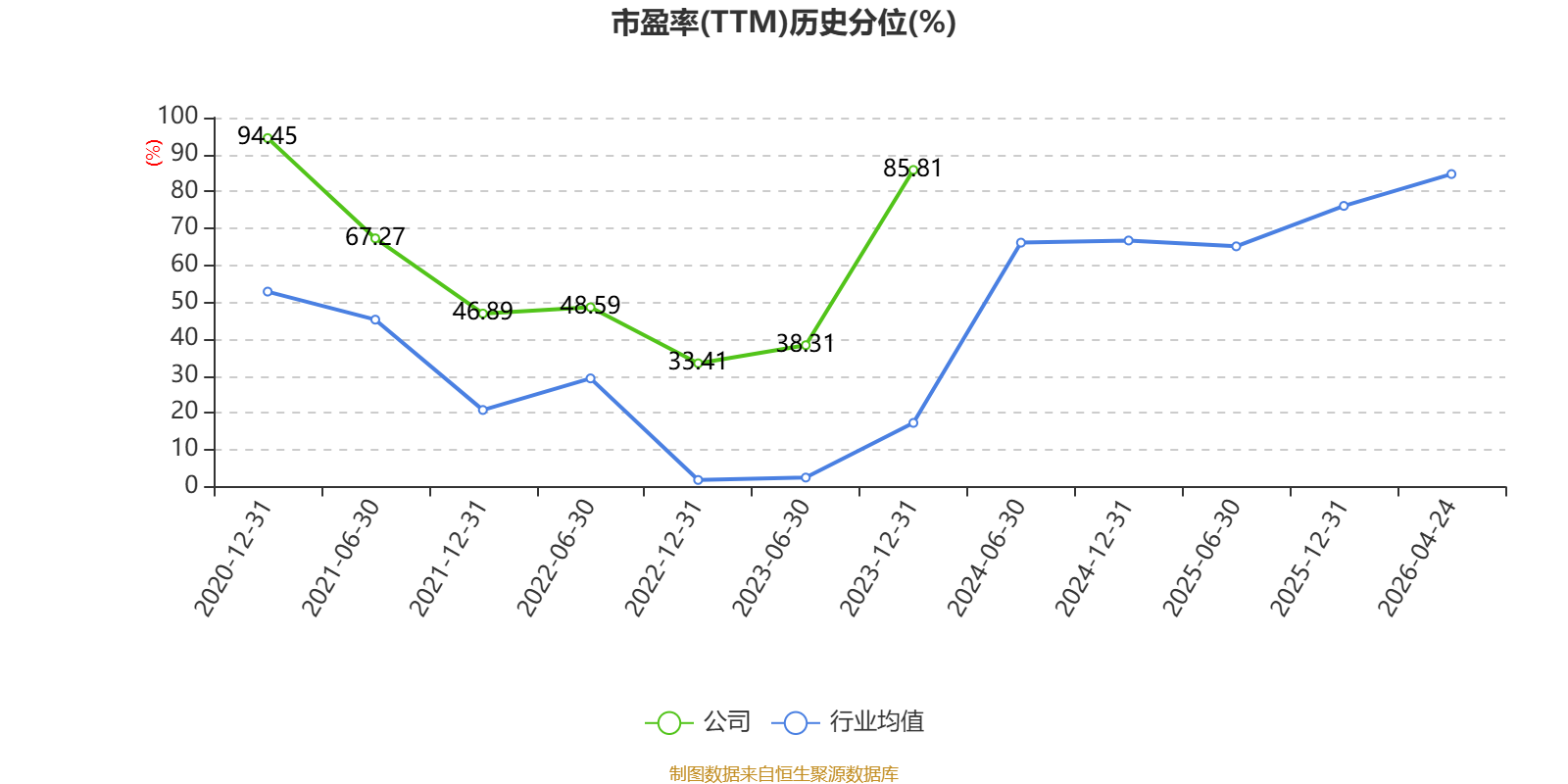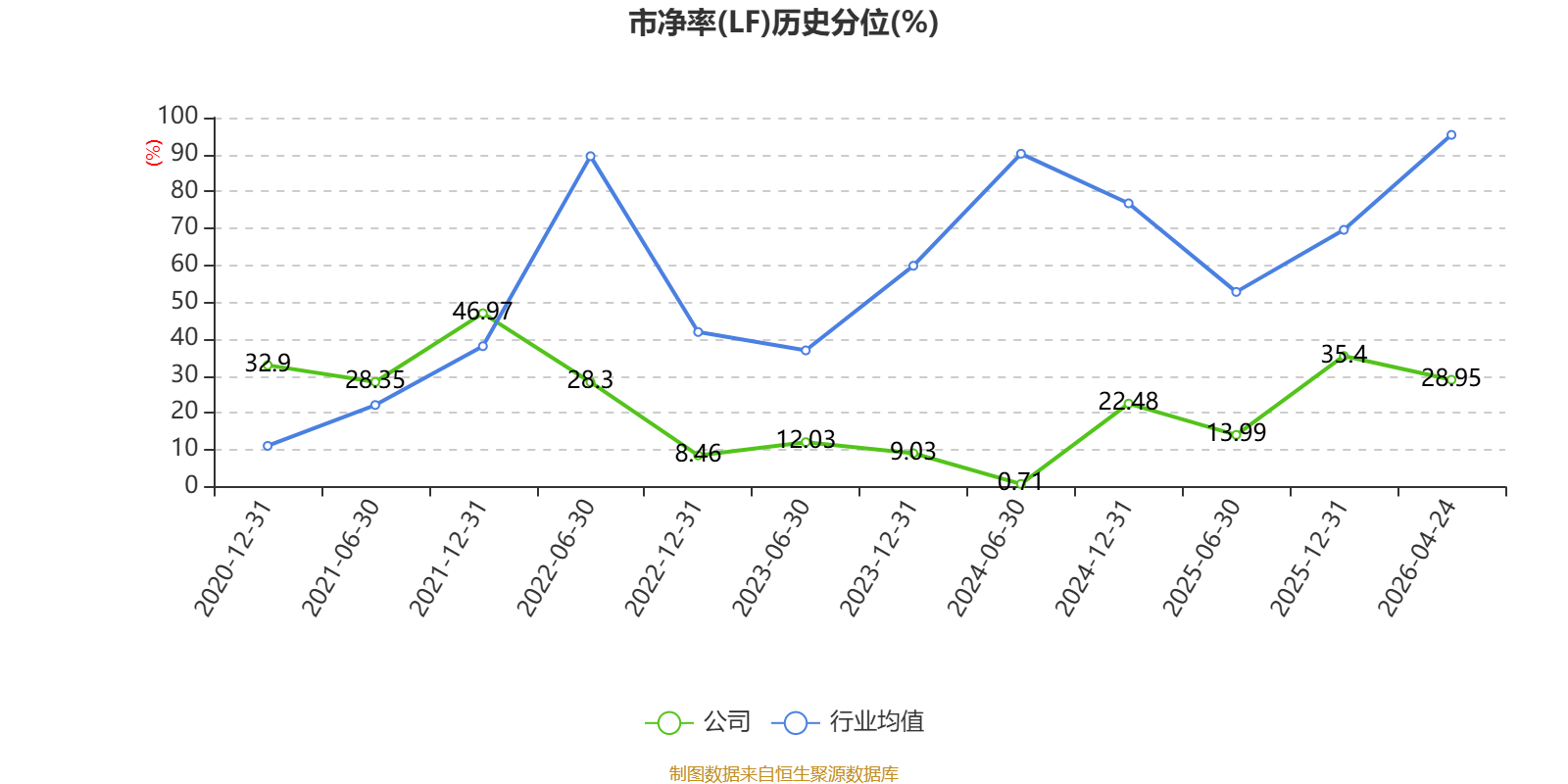 市盈率、市净率为负时,不显示当期分位数,会导致折线图中断。