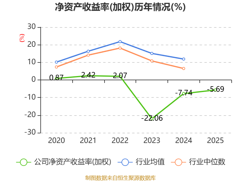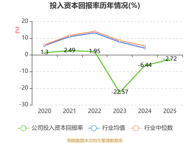 数据显示,2025年公司加权平均净资产收益率为-5.69%,较上年同期上升2.05个百分点。公司2025年投入资本回报率为-2.72%,较上年同期上升3.72个百分点。