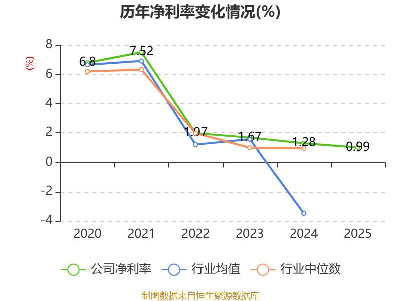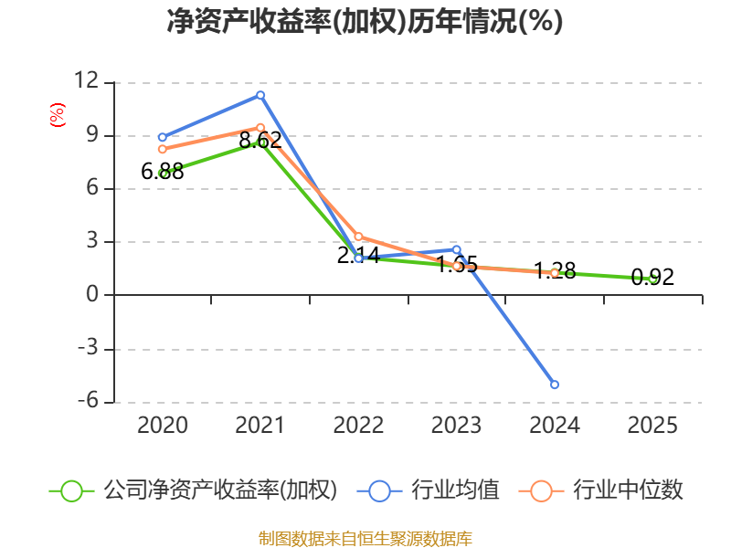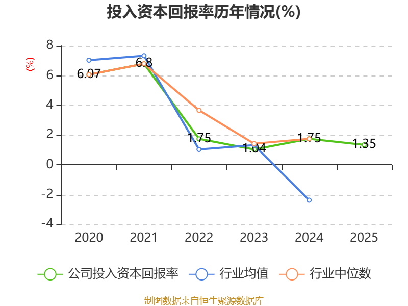 数据显示,2025年公司加权平均净资产收益率为0.92%,较上年同期下降0.36个百分点。公司2025年投入资本回报率为1.35%,较上年同期下降0.4个百分点。