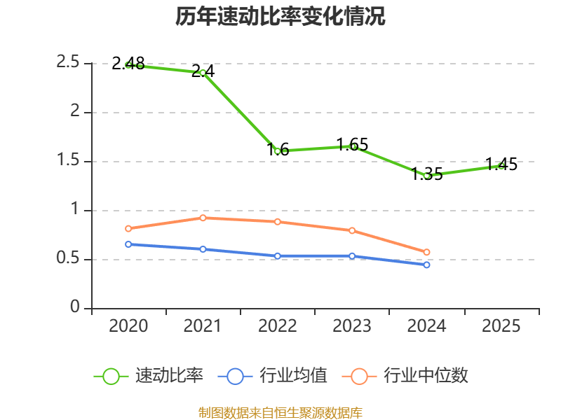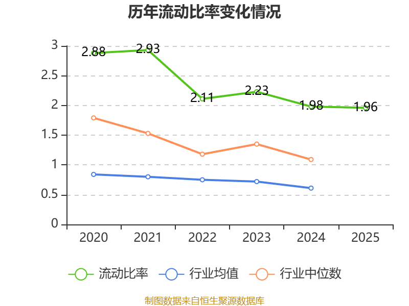 2025年,公司流动比率为1.96,速动比率为1.45。