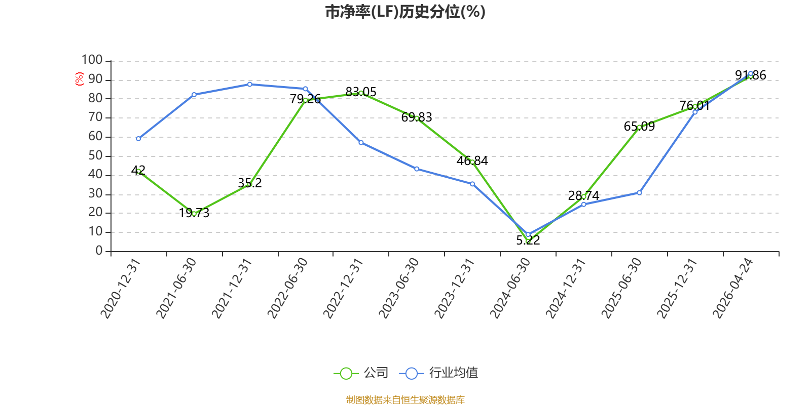 市盈率、市净率为负时,不显示当期分位数,会导致折线图中断。