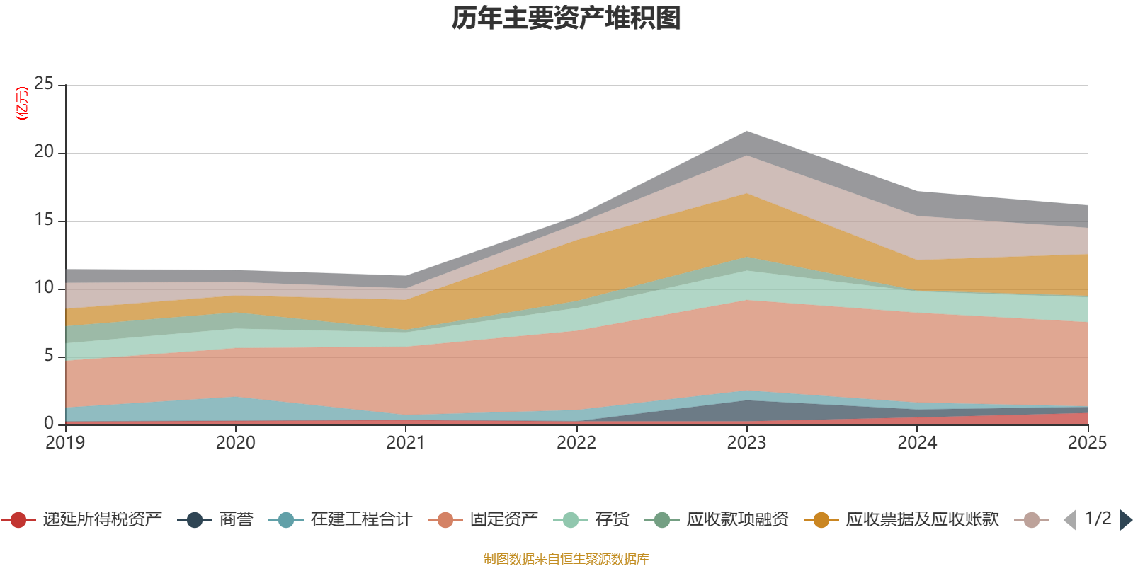 资产重大变化方面,截至2025年末,公司货币资金较上年末减少40.03%,占公司总资产比重下降6.82个百分点;应收票据及应收账款较上年末增加36.05%,占公司总资产比重上升5.87个百分点;在建工程合计较上年末减少91.01%,占公司总资产比重下降2.7个百分点;存货较上年末增加18.01%,占公司总资产比重上升2.31个百分点。