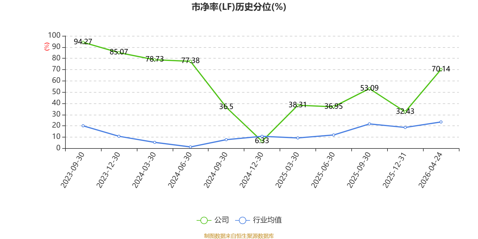 市盈率、市净率为负时,不显示当期分位数,会导致折线图中断。