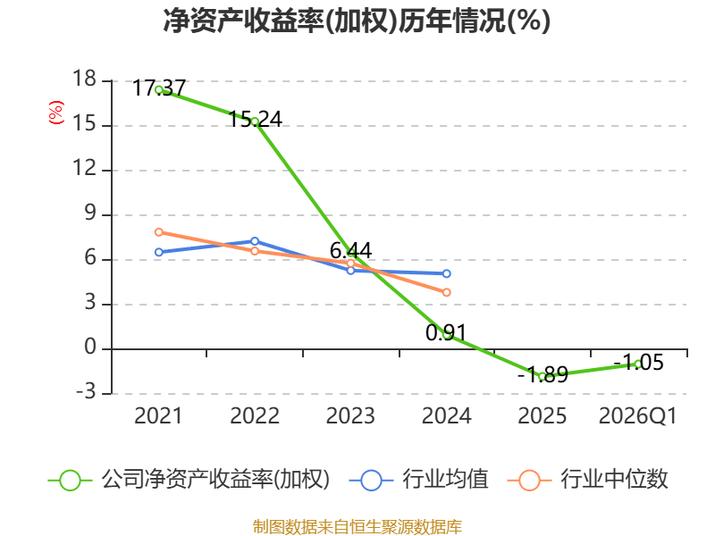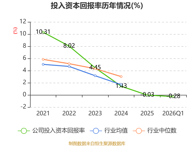 盈利能力方面, 2026年一季度公司加权平均净资产收益率为-1.05%,同比上升0.07个百分点。公司2026年第一季度投入资本回报率为-0.28%,较上年同期上升0.08个百分点。