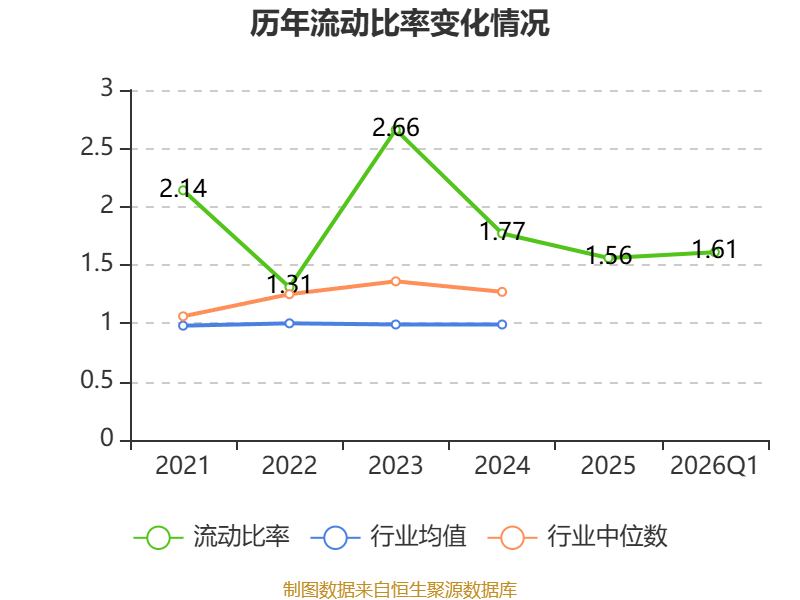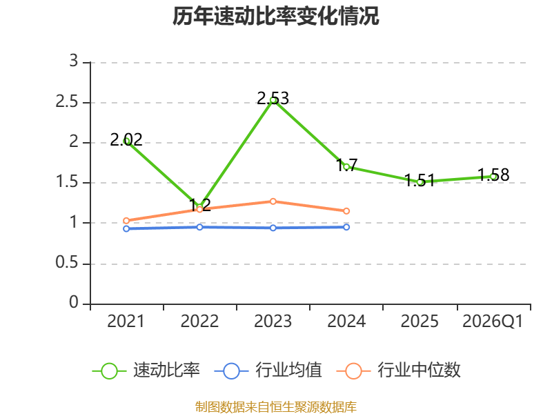2026年第一季度,公司流动比率为1.61,速动比率为1.58。