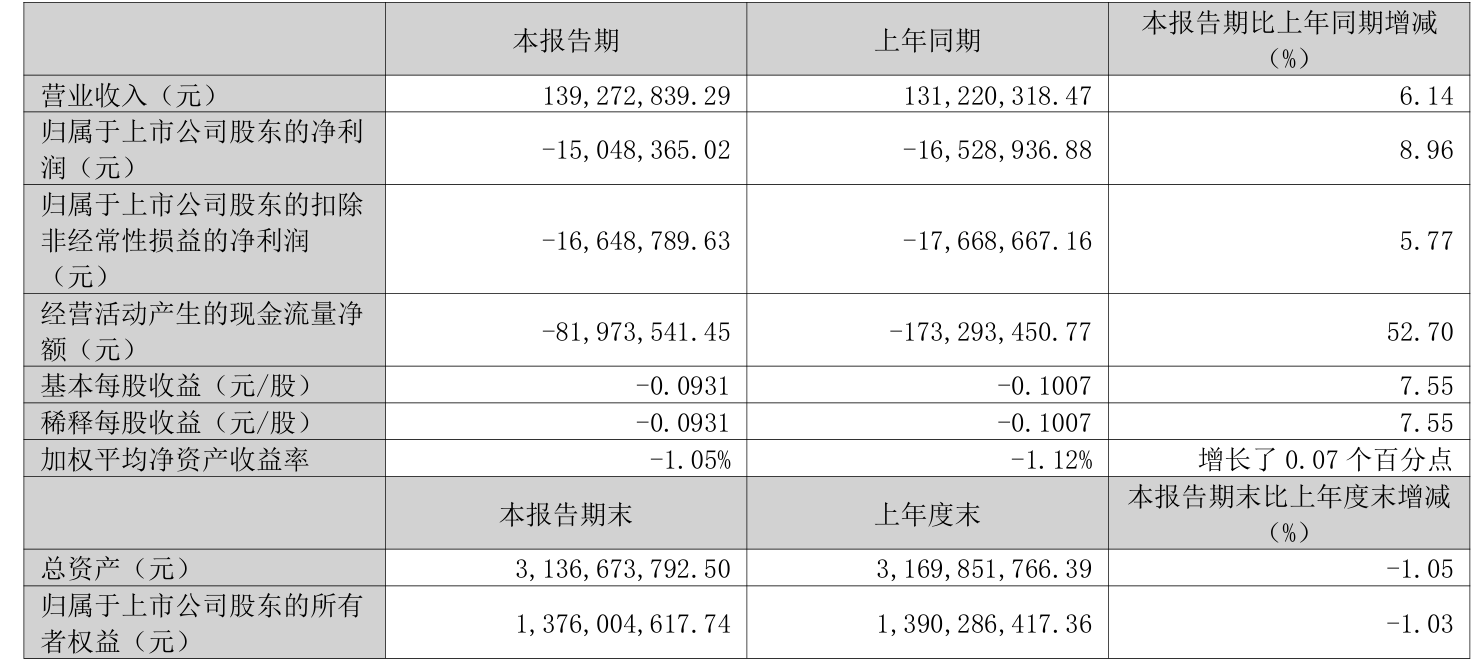 中证智能财讯舜禹股份(301519)4月25日披露2026年第一季度报告。公司实现营业总收入1.39亿元,同比增长6.14%;归母净利润亏损1504.84万元,上年同期亏损1652.89万元;扣非净利润亏损1664.88万元,上年同期亏损1766.87万元;经营活动产生的现金流量净额为-8197.35万元,上年同期为-1.73亿元;报告期内,舜禹股份基本每股收益为-0.0931元,加权平均净资产收益率为-1.05%。